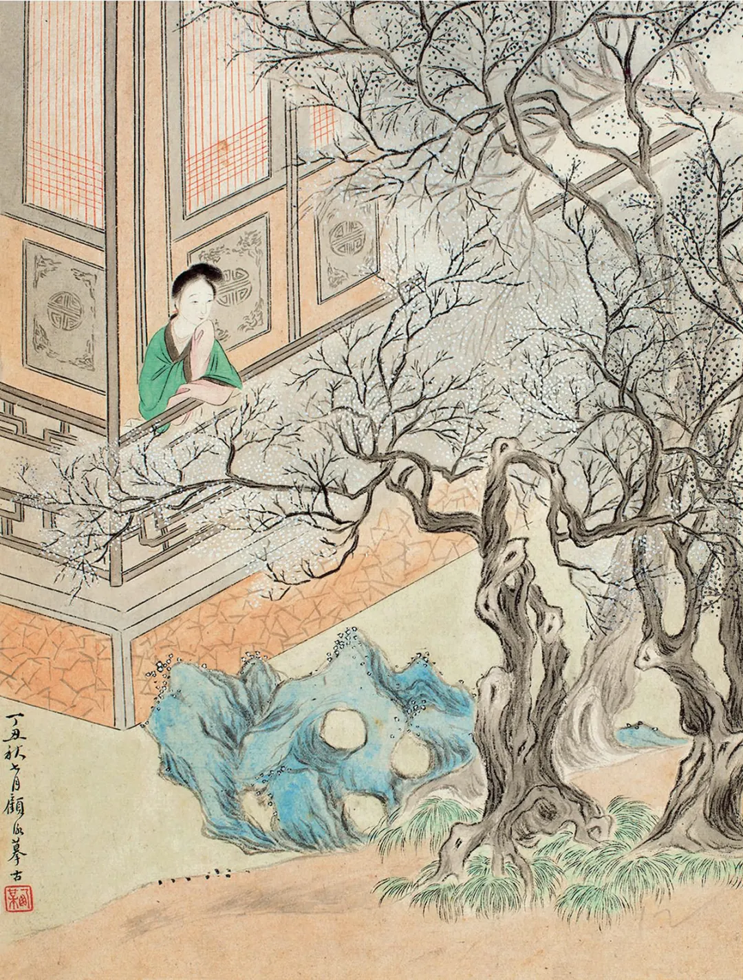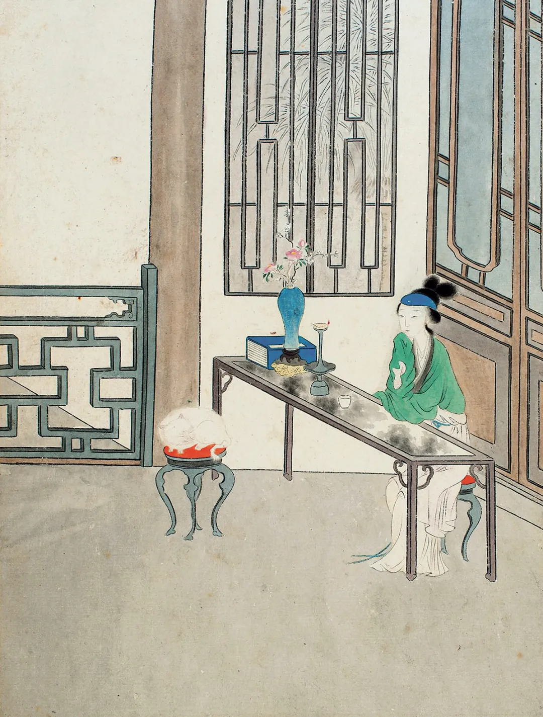这哪是古代淑女图鉴?分明是“清代女子图鉴之摸鱼大全”!顾洛笔下的春闺少女,不绣花不弹琴,专攻“反内卷”秘籍——看这小姐妹,表面捧着《女诫》打瞌睡,书页里夹的却是话本子,活脱脱“清代学霸的伪装术”!