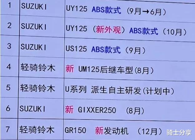 据说这是官方刻意透露的,所以可信度极高。从图片来看轻骑铃木计划在2026年至少会推出六款新车,其中包括UY125ABS版、新款UY125、新款UM125、US125ABS版、极客飒250、新款GR150。
